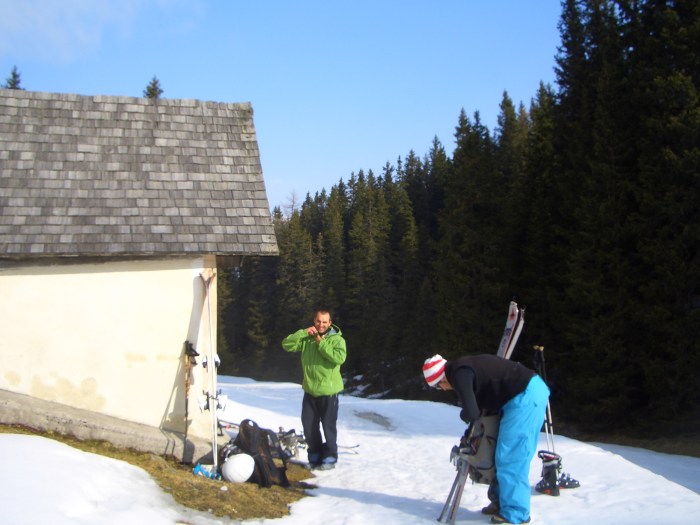 It took us nearly 3 hours to get up there with our touring gear (never expected that;-)…) from the parking place at Maria Waldrast… But we took it easy, didn’t hurry up the mountain and those bloody switchback-turnings…;-) …3 hours for 2 minutes skiing down…;-)