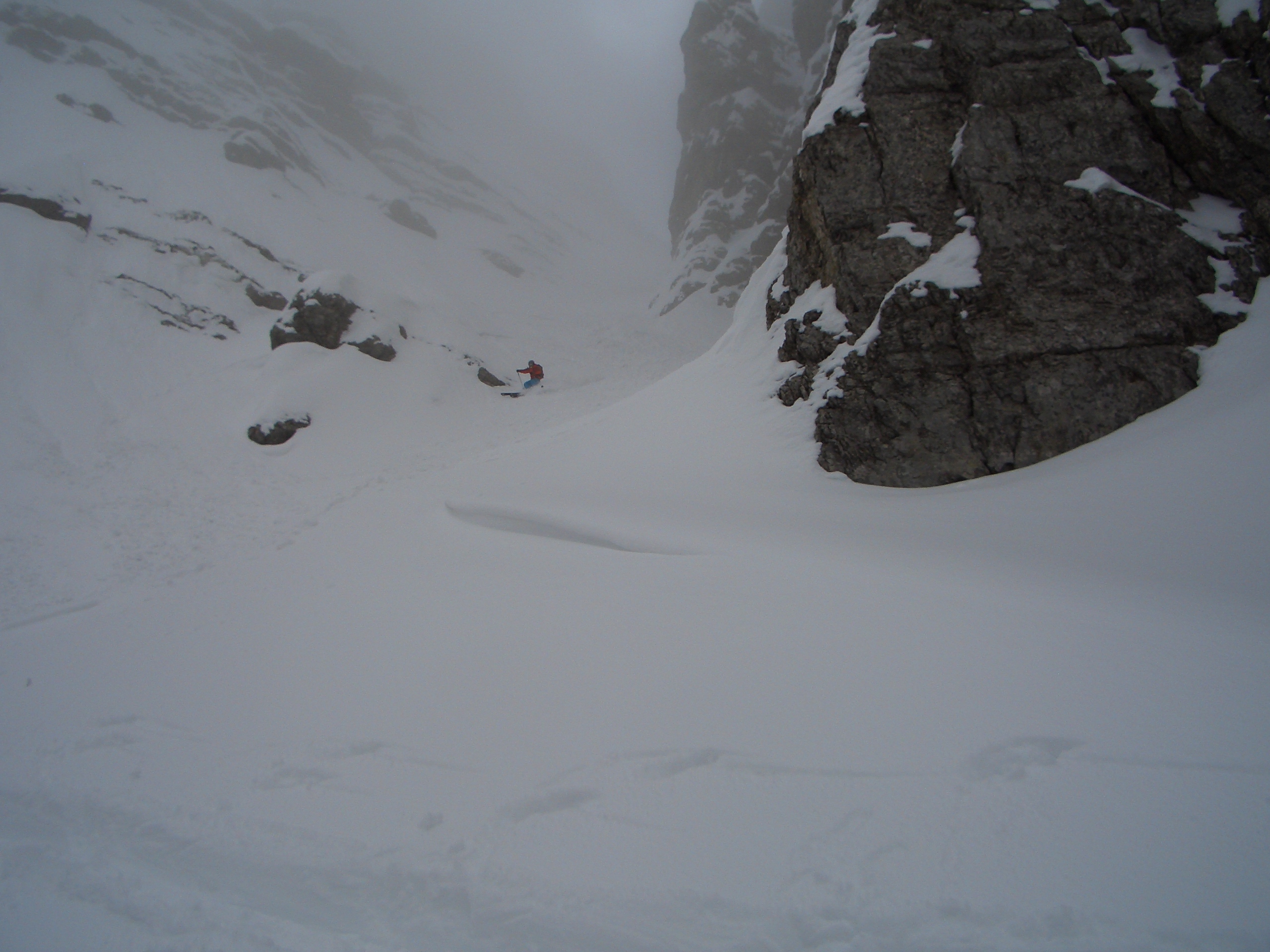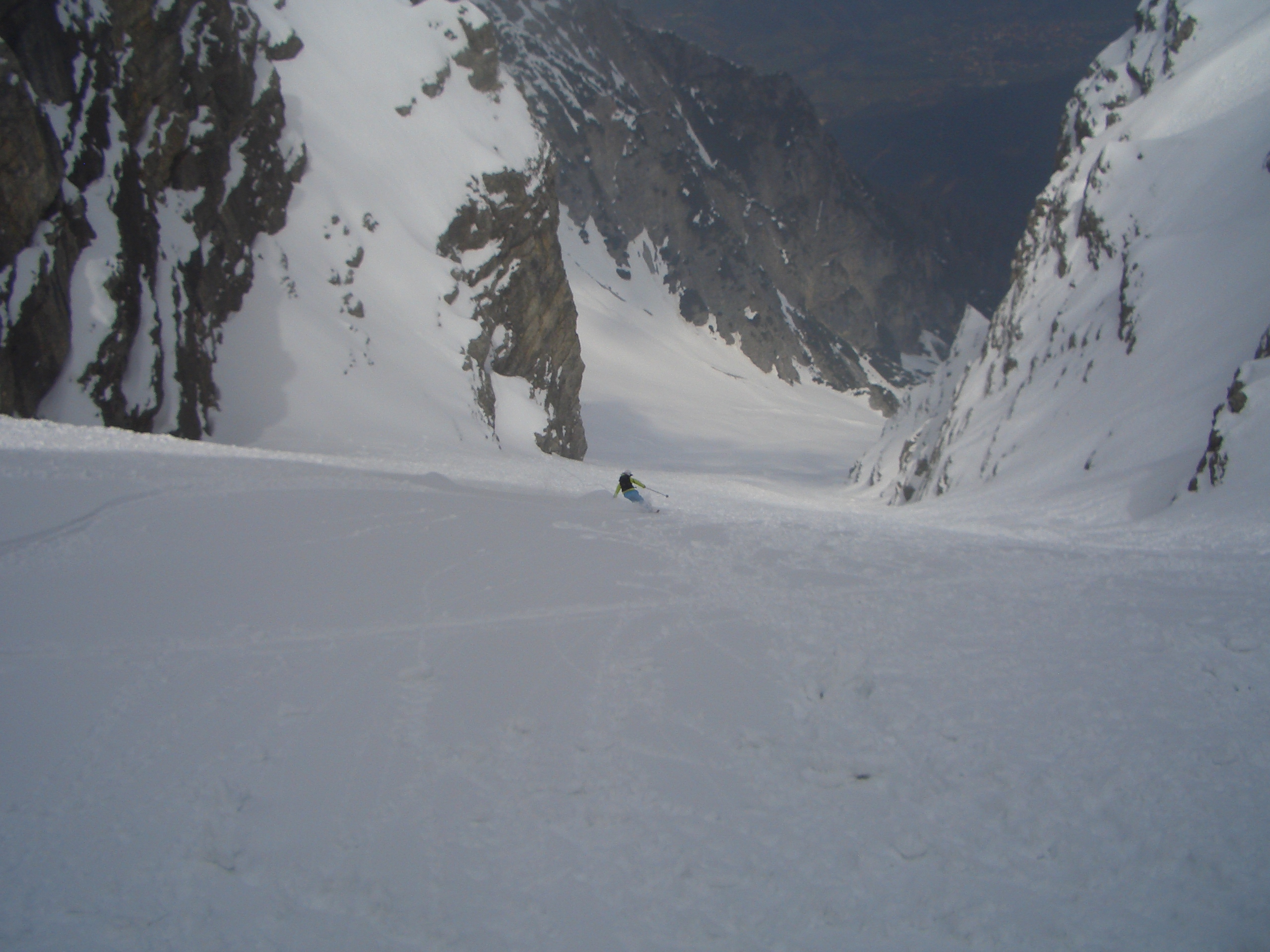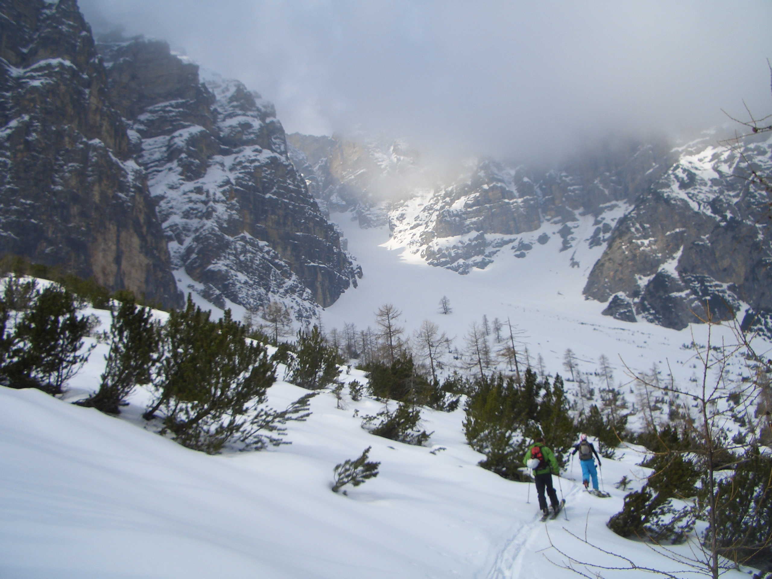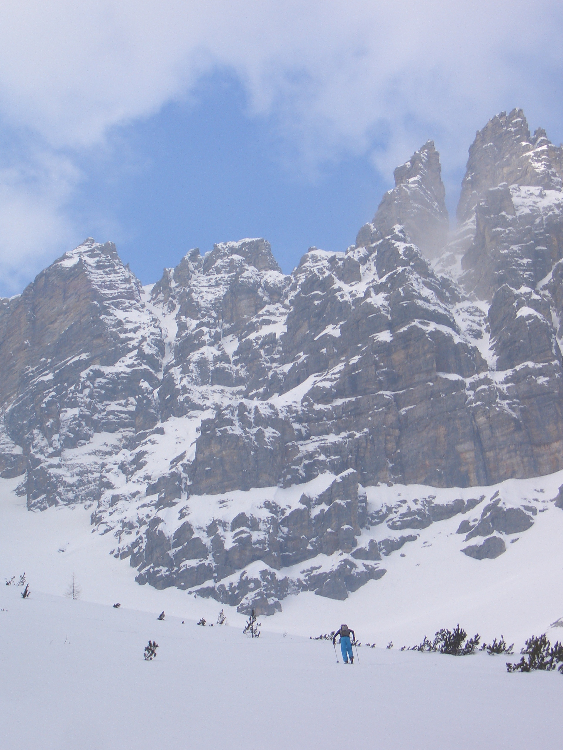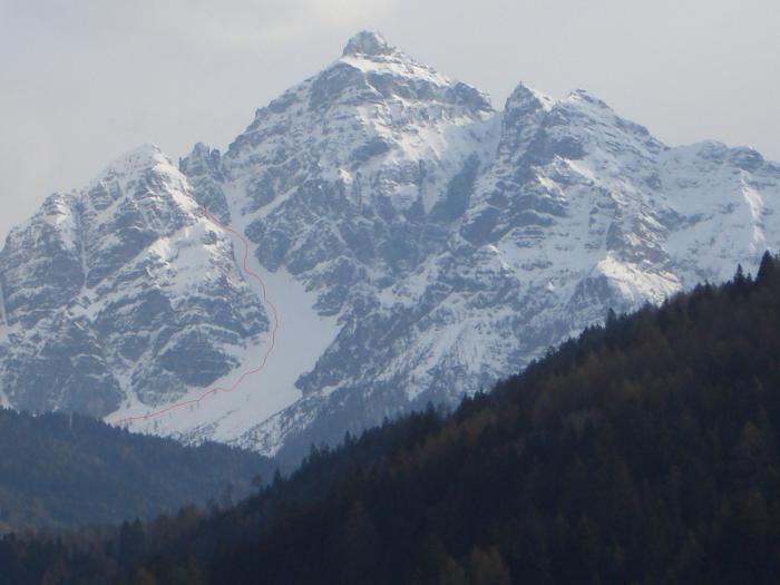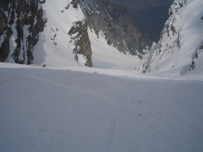 Already last year I wanted to ski one of the colouirs but due to my knee surgeries I had to postpone it for this year… And this year nearly the same… Knee problems couldn’t keep me away from it this year… I wanted to do this! Well, it’s not the steepest face or that hard to ski but the left colouir is hardly skied by any people, as you can’t ski in from the top of the Serles… So you have to hike up all the way in the colouir… And that is not so safe, as there is always a danger of falling rocks… When we were hiking up we always heard some rocks and became aware… If you got caught by a rock, well… bad luck…