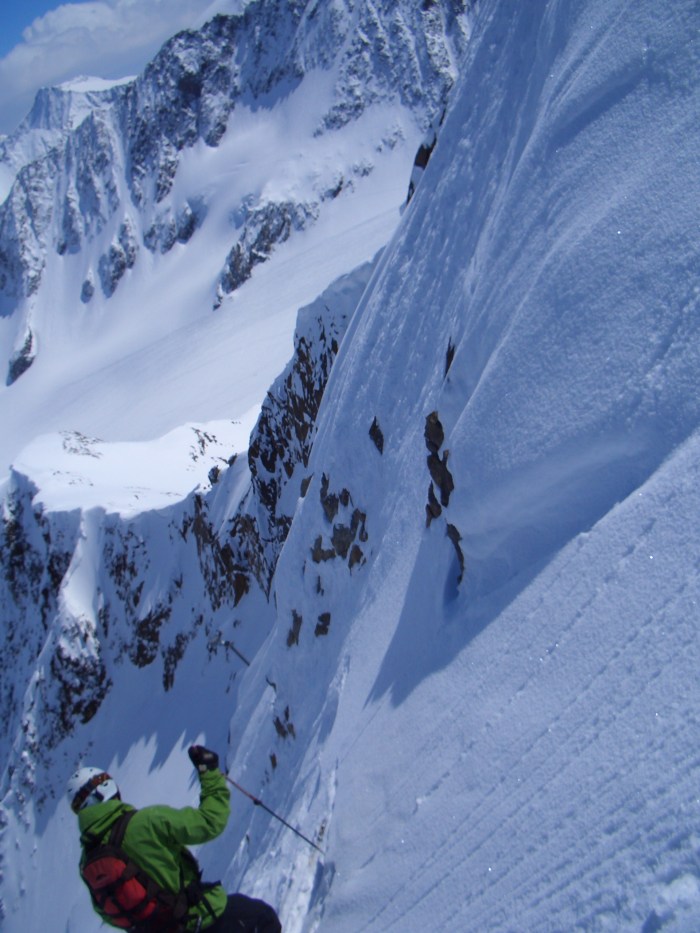 Hiked up the Schaufelspitze, 3333 m, had an awesome view there and skied this impressive mountain… Entrance is a very steep colouir, 50° steep but than it flatens out…