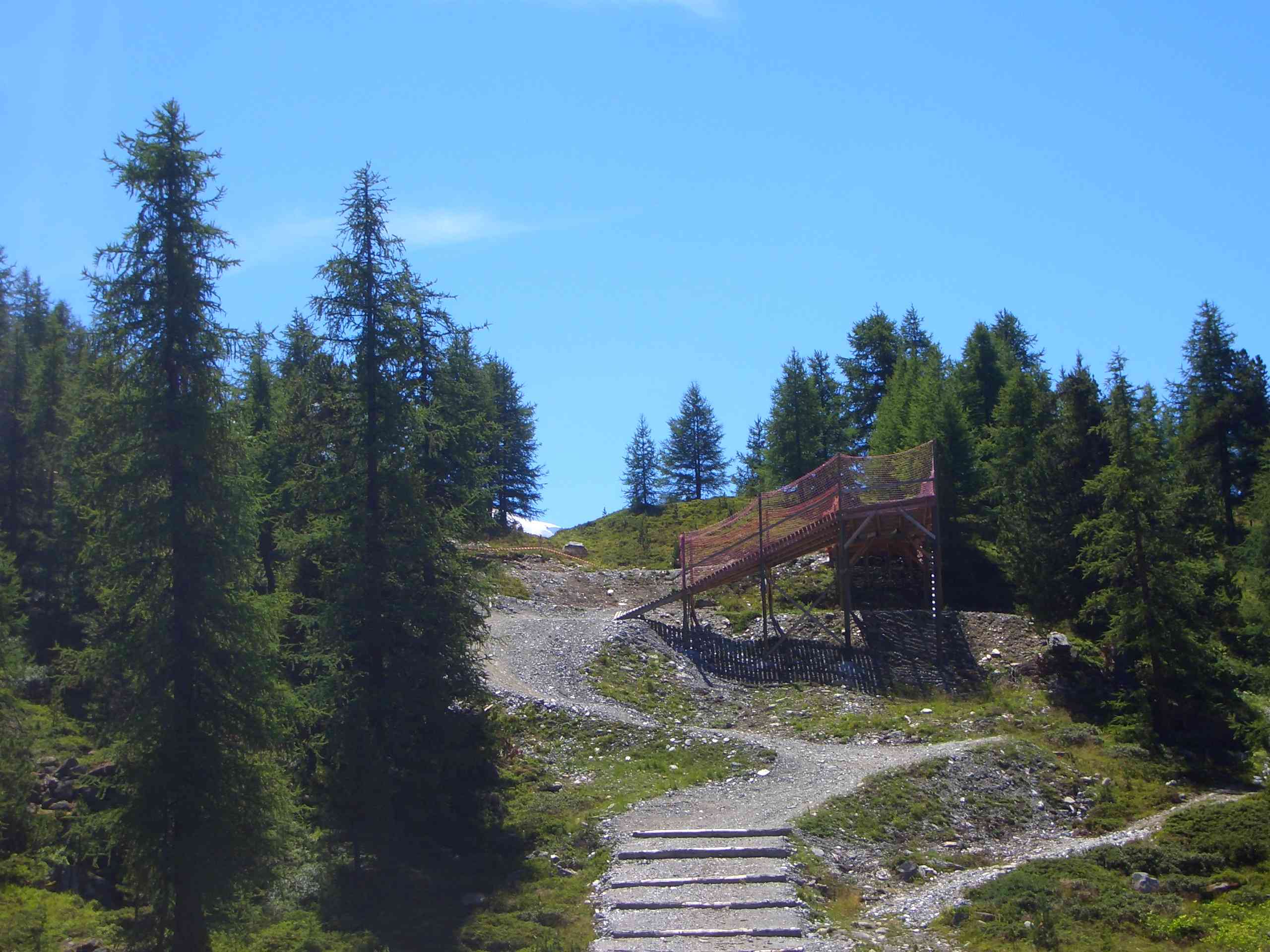 Bike and backpack... 20 kg on my back ;-)... good workout...;-)...Non falling zone...it's going down...Knebelbrücke, 1622 m...