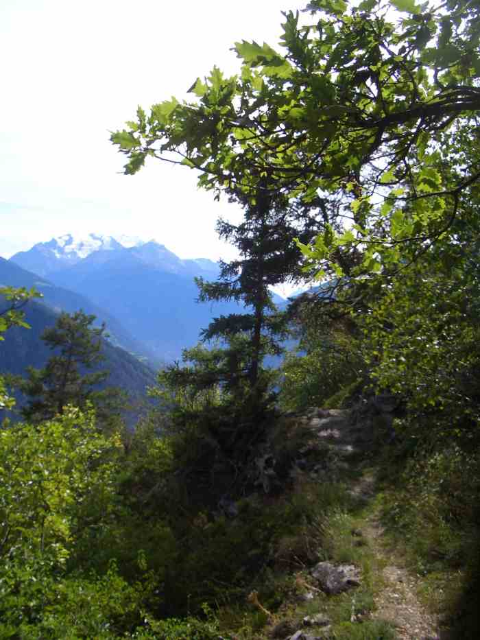 The Südrampentrail is located high up the Rhonevalley… Beautiful views to the Mattertal and Saastal with the highest peaks, such as Weisshorn and Matterhorn included…