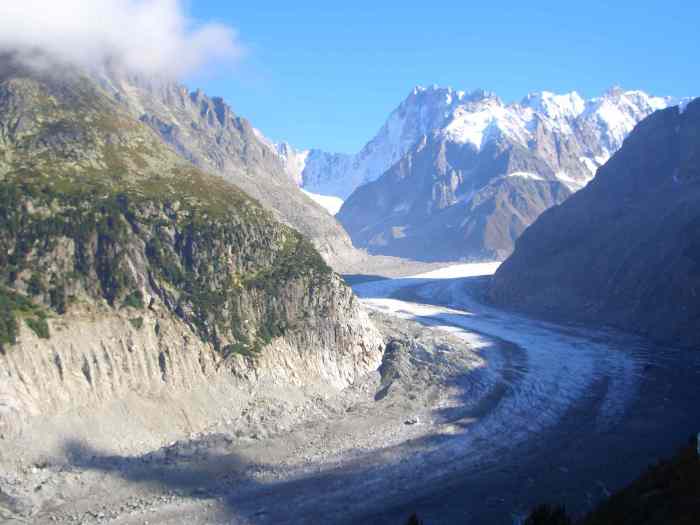 No biking today 😦 Planned it but my back brake wasn’t working anymore, so going downhill without brakes – not a good idea ;-)… Alternative programm: Hiking 🙂 Took the cable car up to the first station of Aguille d’Midi – what a panorama and beautiful day! Hiked over to Mer de Glace and was just fascinated by the impressive surroundings…