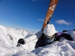 2,5 hours hiking along a the ridge and afterwards skiing down powder would have been perfect… But we knew what to expect… Wind-blown, old snow, hard to ski on but great to keep you working on your skis ;-)…