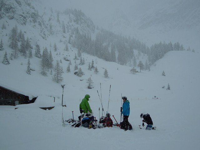 Last weekend (21./22.1.2012) we had our first Junior Freeridecamp stop in the Axamer Lizum! Michi Mayerhofer and myself were the coaches to shred the deep powder with 12 motivated young shredders… As it was dumping and we had avalanche danger warning level 4, we focused on searching with the avalanche beacons and rode powder within the boundary zone… This winter is extraordinary! So much snow – amazing! And also the snow pack is settled very good, great for us freeriders! Thanks to ORTOVOX for helping the kids out with shovels, beacons and probes!