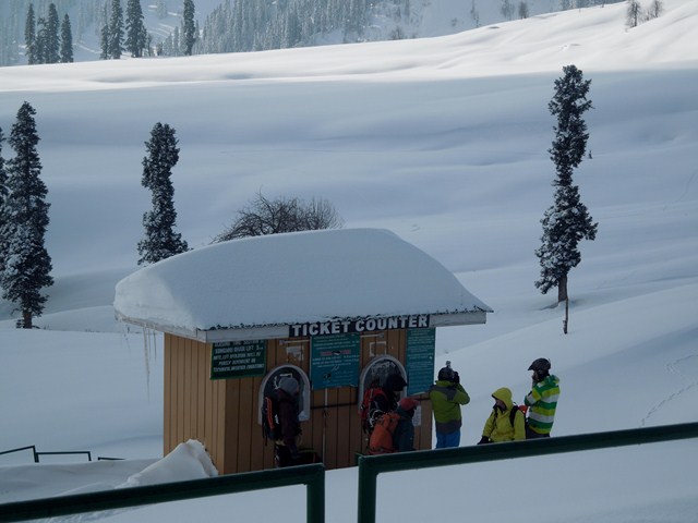In der Früh immer das gleiche Prozedere… Jimmi, der Hausbursche kommt zum Feuer machen ins Zimmer, immer zur selben Zeit, so gegen 7.15 Uhr, somit bin ich dann immer wach, obwohl ich noch schlafen könnte…J Gemeinsames Frühstück mit den anderen, anziehen, zum Ticket Office Lifttickets kaufen. Und nein, man kann nicht gleich für alle Lifte eine Karte kaufen, außer man hat einen Season Pass. Für jeden Lift gibt es einen eigenen Ticket Counter ;-)… Und wenn beispielsweise die obere Sektion der Gondel noch nicht geht, steht man in der Schlange und kann erst wenn die Gondel aufsperrt, die Tickets kaufen… Ach ja, vergessen, wir sind hier in Indien… Also viiiiiiiel Geduld mitbringen 😉 Alles easy!!!! Ansonsten hat man hier nix verloren!!!!!!