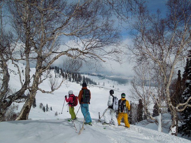 Die ersten drei Tage sind vom Wetter her recht gut, zwar zieht es gegen mittags immer zu, trotzdem ist genügend Sicht, um ein paar Lines vom Mount Apharwat zu ziehen. Es sind sehr viele Touristen hier, alle mit breiten Skiern unterwegs, die wenigsten allerdings mit den notwendigen Skills. D.h. viele queren den Berg, weil sie zu faul sind zum aufsteigen oder sie fahren im Rudel in den Hang ein… Alles NO-GO’s fürs Gelände!