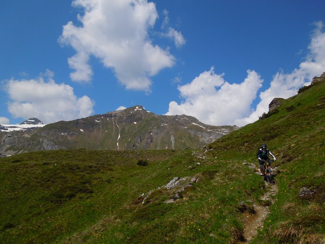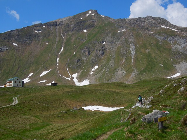 We parked the car in Trins, started with a steep hillclimb as Andi’s bus wouldn’t have made it up the hill… Optional… Park the car at the parking place for the Padasterjochhaus… From there a nice, continuous, not to steep mountainbike route leads all the way up to the Padasterjochhaus… Vreni wasn’t lucky this day as her chain broke, so she had to stay behind and lay in the sun… Also not bad 😉