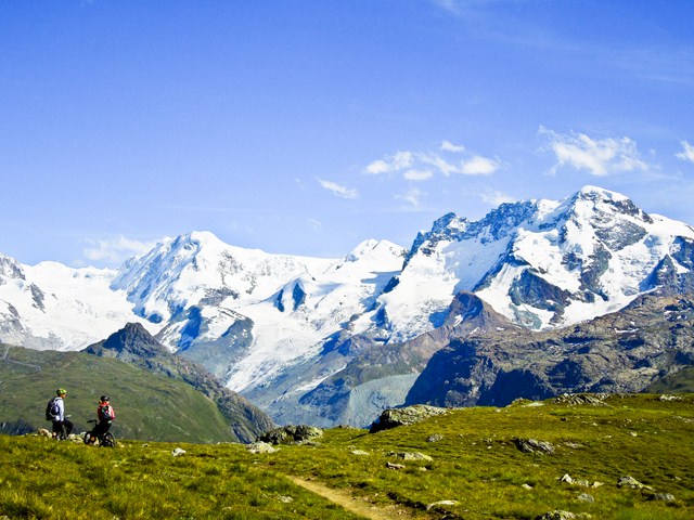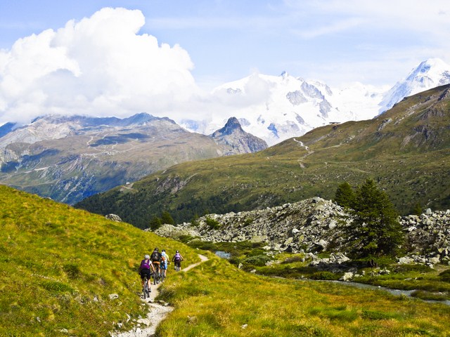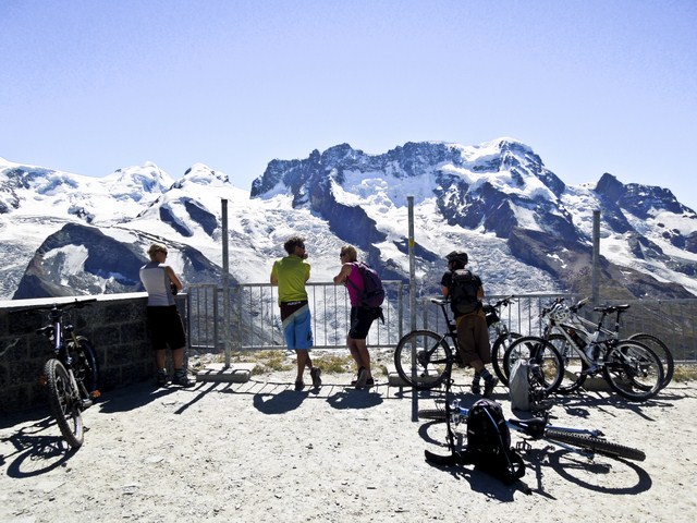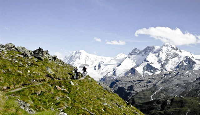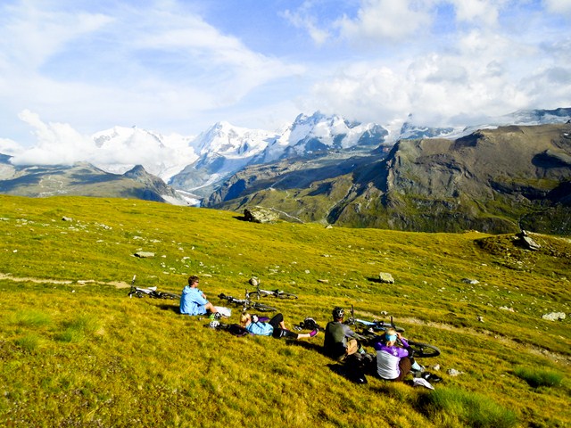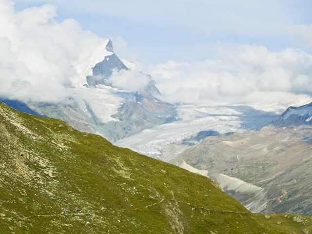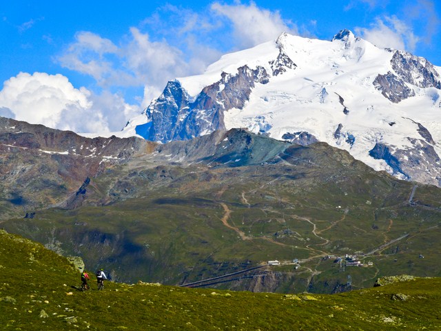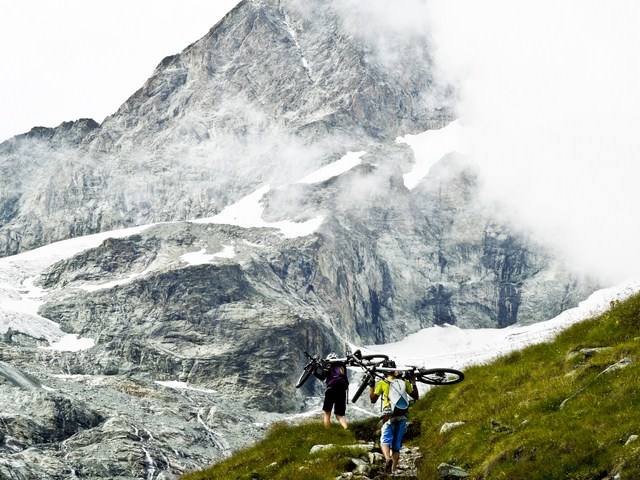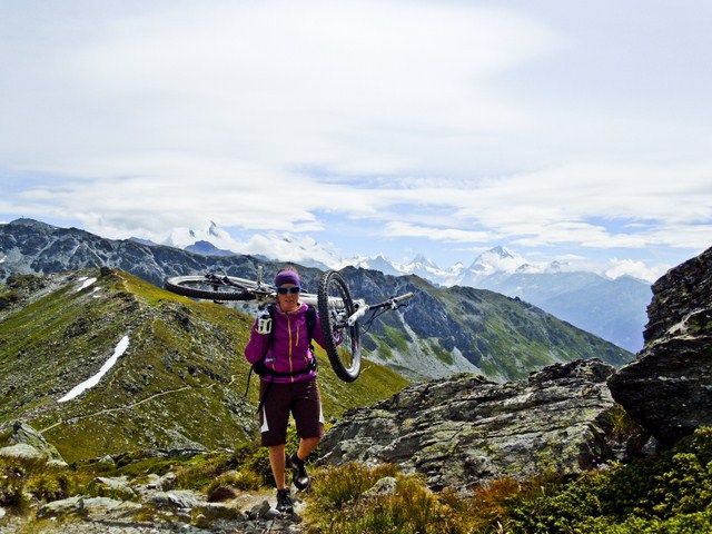 For the Trift tour you start also in Zermatt and either take the Schwarzhornbahn or save the money and bike to Zmutt and into direction of Schönbielhütte. Then 400 altitude meters tossing and carrying the bike to ride on of the most beautiful panoramic trails I’ve ever rode… Views to Dufourspitze, Breithorn, Liskamm, Pollux and Co guaranteed. And then more than 1000 altitude meters technical but good rideable trail downhill.