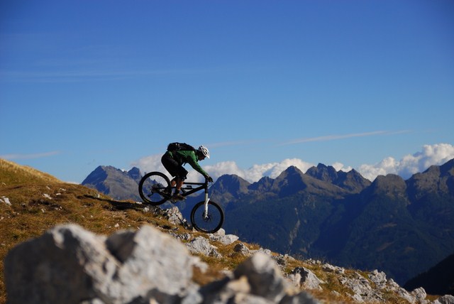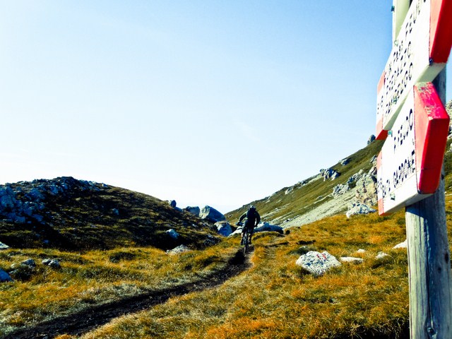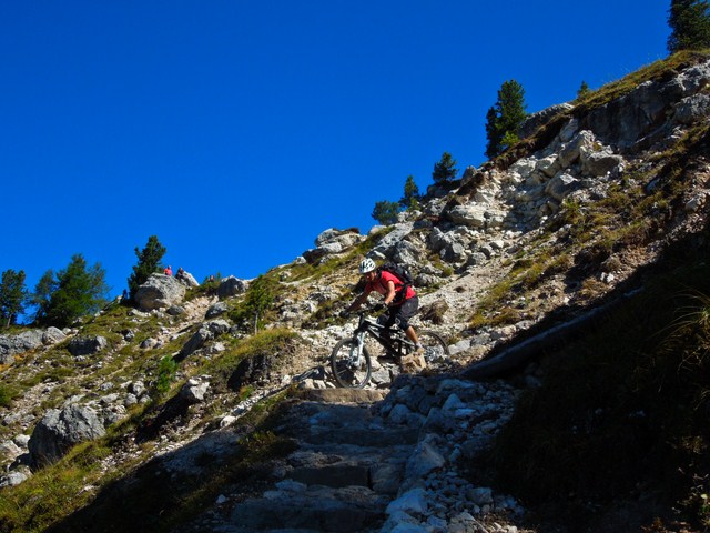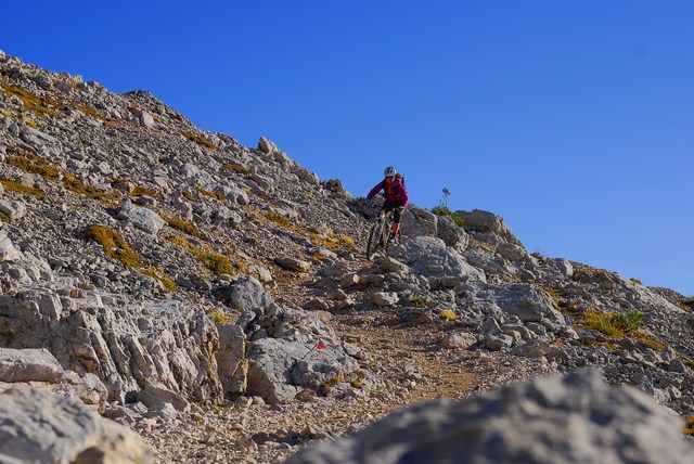 Anspruchsvolle Abfahrten wechseln sich ab mit kurzen, knackigen Anstiegen… Und die Zeit rennt, schließlich sind wir erst gegen 14.30 Uhr gestartet… Doch Silvano hat gemeint es geht… Wir vertrauen ihm, er ist ja Local…