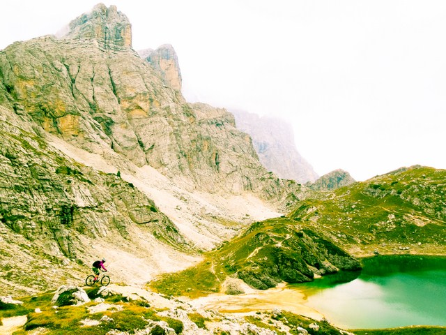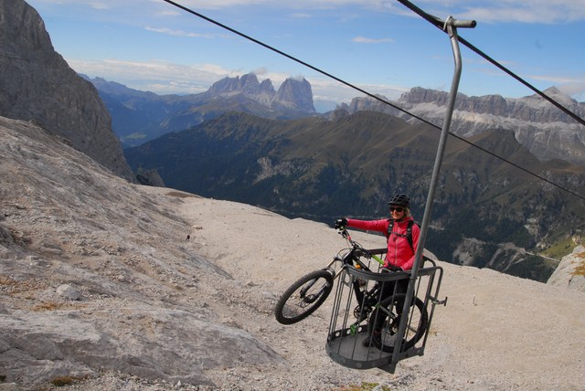 Ausgeschlafen und voller Motivation ging’s am nächsten Morgen Richtung Alleghe. Die Jungs hatten bereits eine Tour ausgesucht, doch hatten wir nicht bedacht, dass die Bahn bereits geschlossen hat! Wie es der Zufall will, landen wir im Bikehotel Alleghe. Bei Kaffee und dem durchstöbern italienischer Bikemagazine geraten wir ins schwärmen, doch unsere Motivation ist leicht geknickt. Schließlich sind wir zu spät dran, um die geplante Tour noch zu starten. Wirklich zu spät? Silvano, der Chef des Hauses spricht uns an und als hätte er es gewusst bietet er uns an, uns den Berg hochzushutteln. Also können wir doch noch zur Civetta hoch 🙂