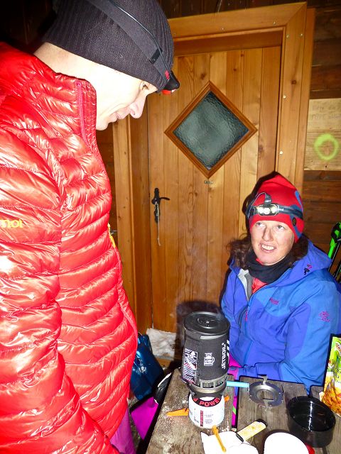 Da es recht kalt ist, ziehen wir uns bald in unsere Daunenschlafsäcke zurück und gehen bald schlafen. Nix mit Kartenspielen heute, zu kalt. Draußen bläst der Wind was mich nachdenklich stimmt, doch ohne mir ein Bild über die Gegebenheiten vor der Hütte zu machen, bringt es nichts, sich den Kopf zu zerbrechen…