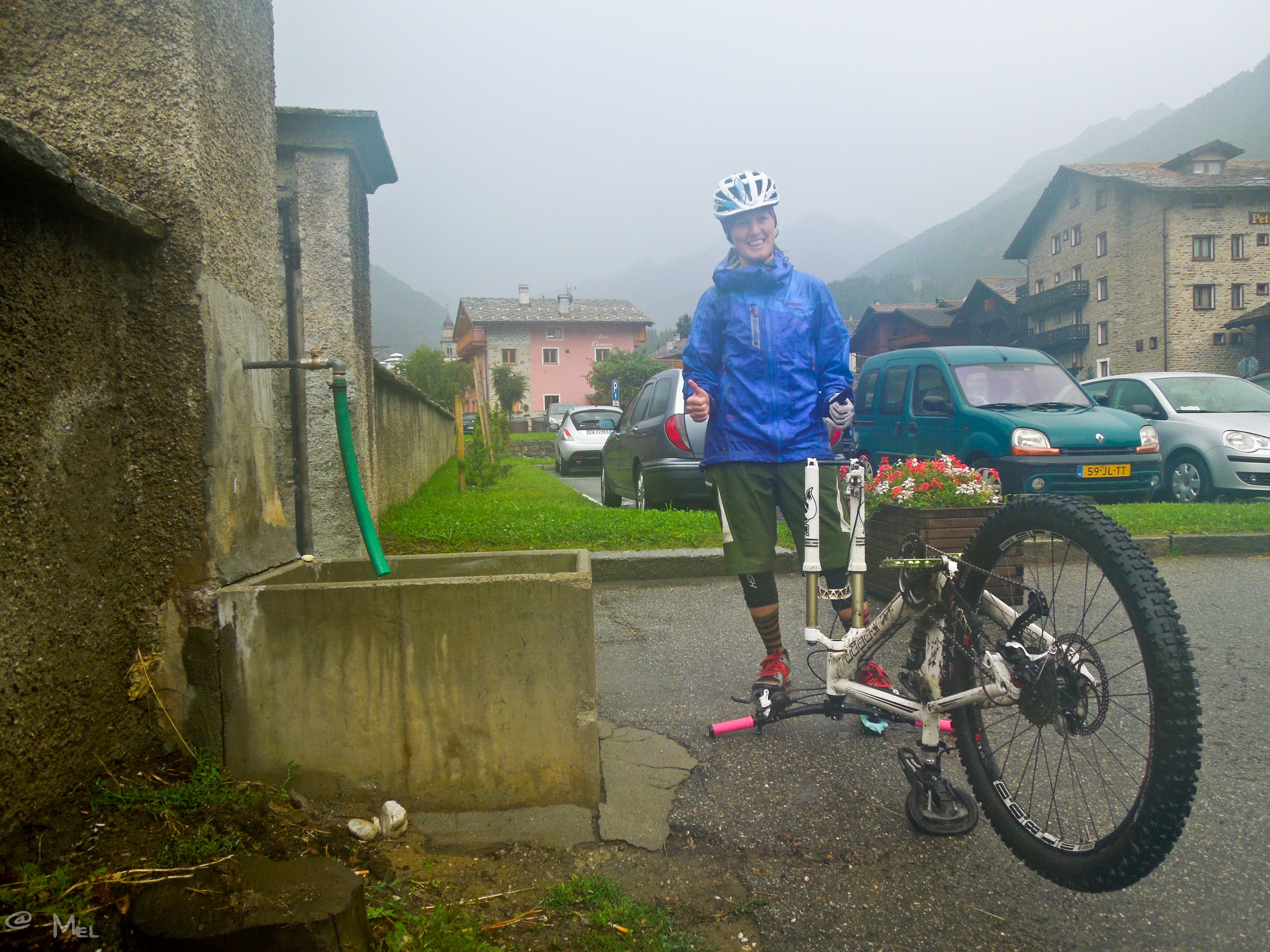 Nach einer halben Stunde warten, lässt der Regen etwas nach und es nieselt nur mehr. Also beschließe ich weiter zu fahren. Hier oben ist keine Menschenseele unterwegs. Nur ein Hirte kommt mir weiter unten im Tal entgegen. Der Trail wird zu Recht als einer der flowigsten in den Alpen bezeichnet. Nach 1400 hm Trailvergnügen erreiche ich klitschnass aber happy wieder den Ausgangsort Cogne. Juhuuu, geschafft! Scheeeee woars!