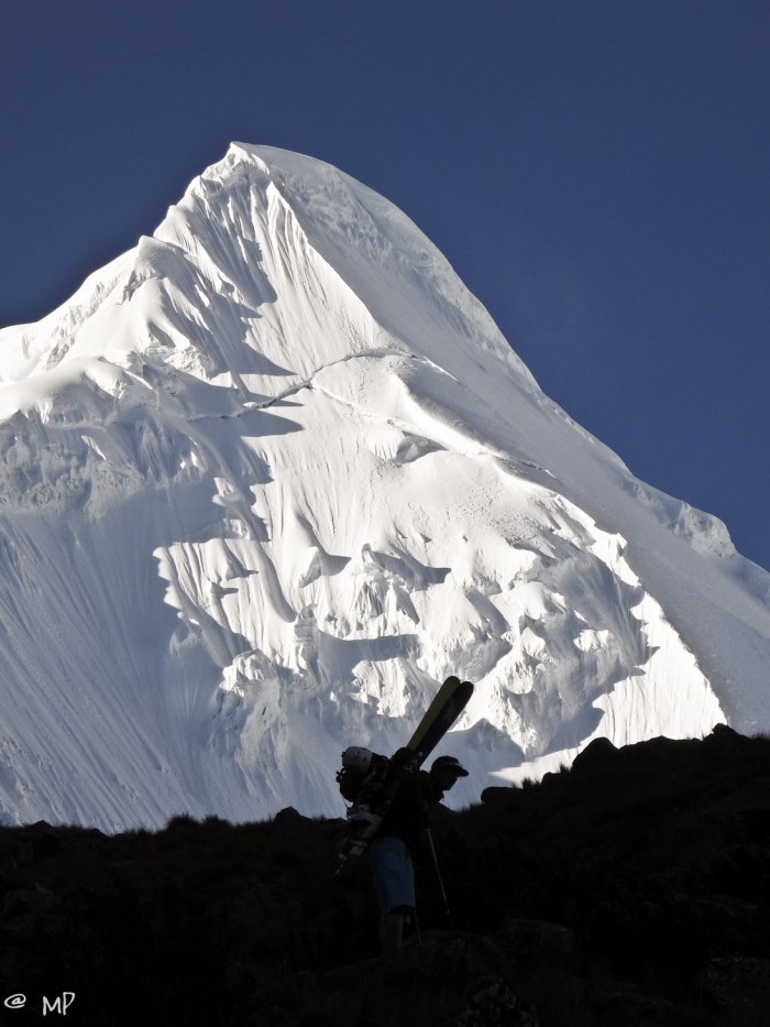 Der Artesonraju, 6025m, gilt wohl als einer der formschönsten Gipfel in der Cordillera Blanca, wenn nicht sogar weltweit. Vielen ist der Berg indirekt bekannt – als DER Paramount Pictures Logo Berg. Nicht nur für viele Bergsteiger hat dieser Berg eine magische Anziehungskraft, in den vergangenen Jahren haben immer wieder Skibergsteiger versucht, die 50-55 Grad steile Flanke zu befahren. Mit oder ohne Erfolg. Sie alle versuchten ihr Glück. Die Erstbefahrung gelang im Jahre 1979 dem französischen Steilwandfahrer Patrick ValIencant, der Tiroler Bergführer Stephan Keck (unser Ansprechpartner für Südamerika – an dieser Stelle DANKE Stephan) fuhr im Jahre 1998 die Wand solo und im Jahre 2013 musste der Schwedische Extremskifahrer Andreas Fransson (RIP Andreas, leider letztes Jahr tödlich in Südamerika verunglückt) 200 hm unterhalb des Gipfels umdrehen…