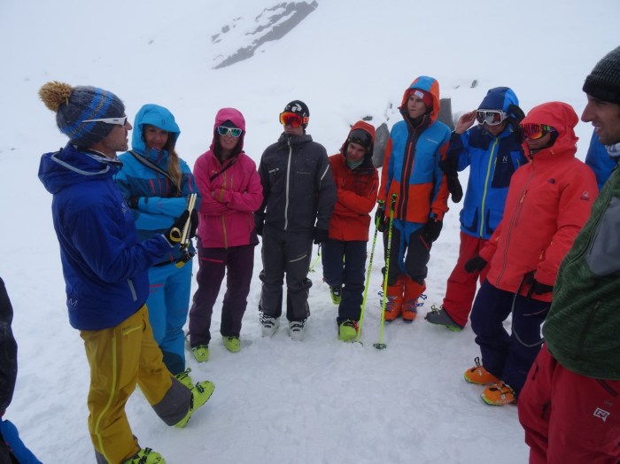 Ende Oktober wurden wir zur alljährlichen LVS-Schulung geladen, ein sehr nettes Get-together unter vielen Profis. Angefangen von den vielen Bergführern/Ausbildnern über die Freeridepro’s Björn Heregger, Lori Huber und was mich besonders freut, Giulia Monego, die ich schon seit Ewigkeiten nicht mehr gesehen hatte. Es war der einzige Tag der Woche, wo der Himmel in Nebel gehüllt war, doch das tat der Stimmung keinen Abbruch. Wir konnten verschiedenste LVS-Geräte beim Reichweitentest ausprobieren, diskutieren fleissig über sonstige alpine Themen und hatten die Möglichkeit den Jetforce, der neue Lawinenairbag von Pieps auszuprobieren.