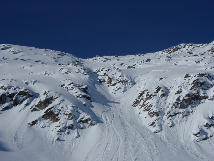 The next face (Hohe Mut North) is not skied very often… In the year 2001, where I worked as a ski-instructor there, I skied this with Martini (czech ski-instructor in Gurgl) and another guy (can’t remember who that was…) I won’t forget where we skied, on this pic there is quite few snow, we definetely had better conditions but it was pretty much that line that I drew in… It didn’t take long that it was spread out and a lot of people knew that we skied it… Was fun, a challenge and of course we were proud that we did it 🙂 Skied that on a Salomon Ski (Scream 10 Pilot), 180 cm, 110-75-100… My first freeride ski 🙂 (won’t forget that…) GOOD TIMES!!!! 🙂
