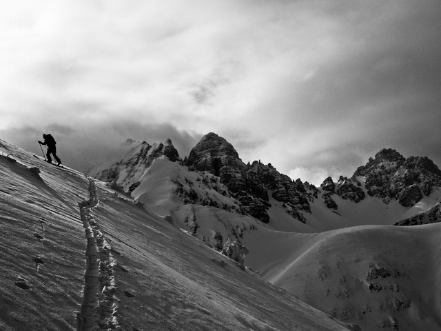 Skitouring, guiding a group, avalanche safety, building a bivy, Rutschblocktest, Schaufeltest, Orienteering, working with a compass, etc… all parts of the second week of my skitouring-instructor education… 15 men, one woman – that’s me 😉