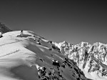 To get to the top of the Rangger Köpfl you have easy lift access that brings you all the way on top of 1939 m… From there we had to put on our skins. It didn’t take very long, three local touring people overtook us and took on setting the tracks. Thanks for that 🙂 Also at the same time two icelandic snowboarders started the hike up… We were quite surprised that they were taking the same way up. Unbelievably the climbed the whole northern ridge with their snowshoes! Crazy guys 😉