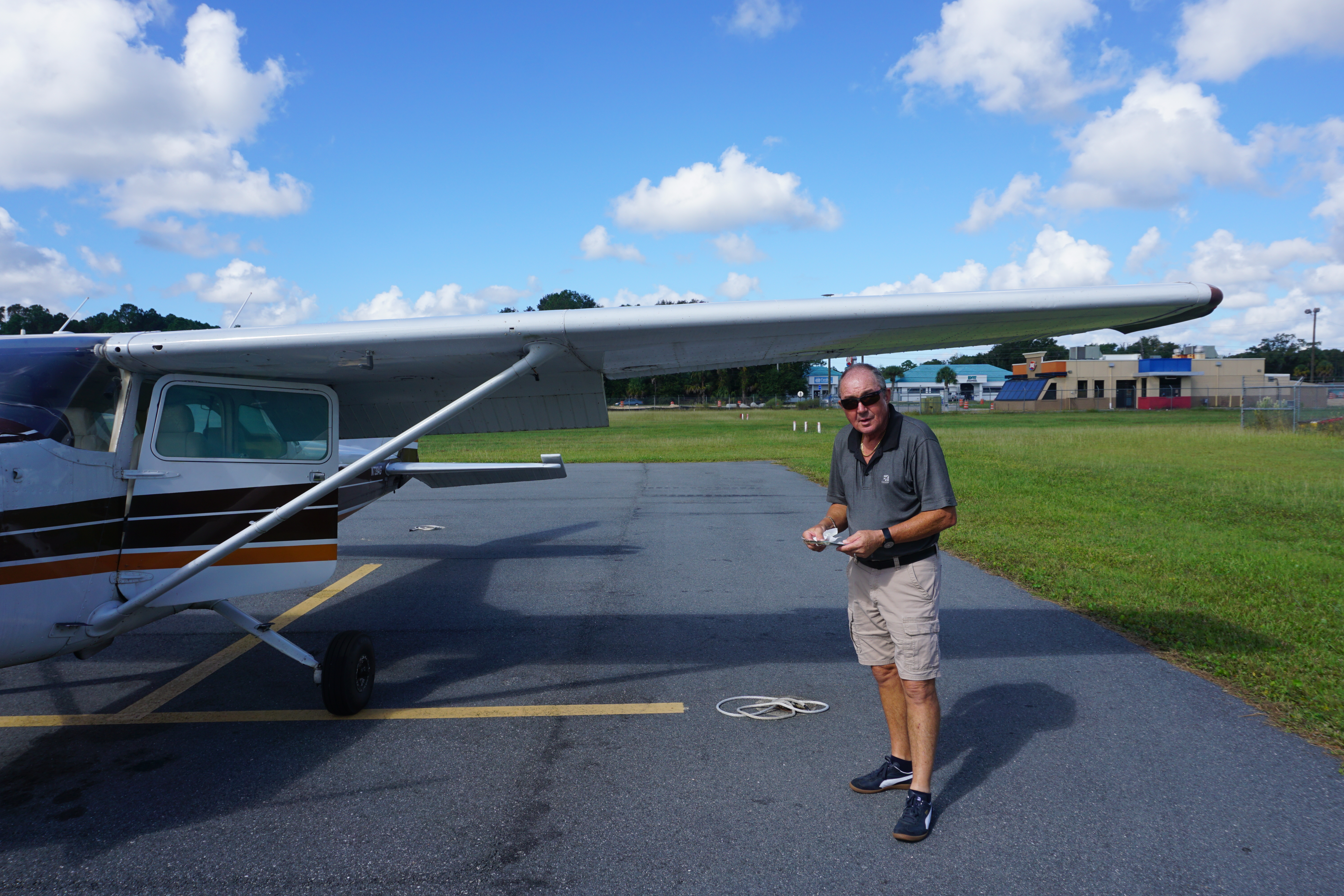 I organized an intro flight at Crystal River Airport with Patrick, who has been a professional CFI/Certified Flight Instructor for many years. It was October 2021, a clear, sunny and hot day, great for flying. Before taking off, we did a pre-flight inspection, checking if the airplane is airworthy. He explained me everything I had to take care about and then off we went – wohooo, airborne. So overwhelming but at the same time lots of fun.